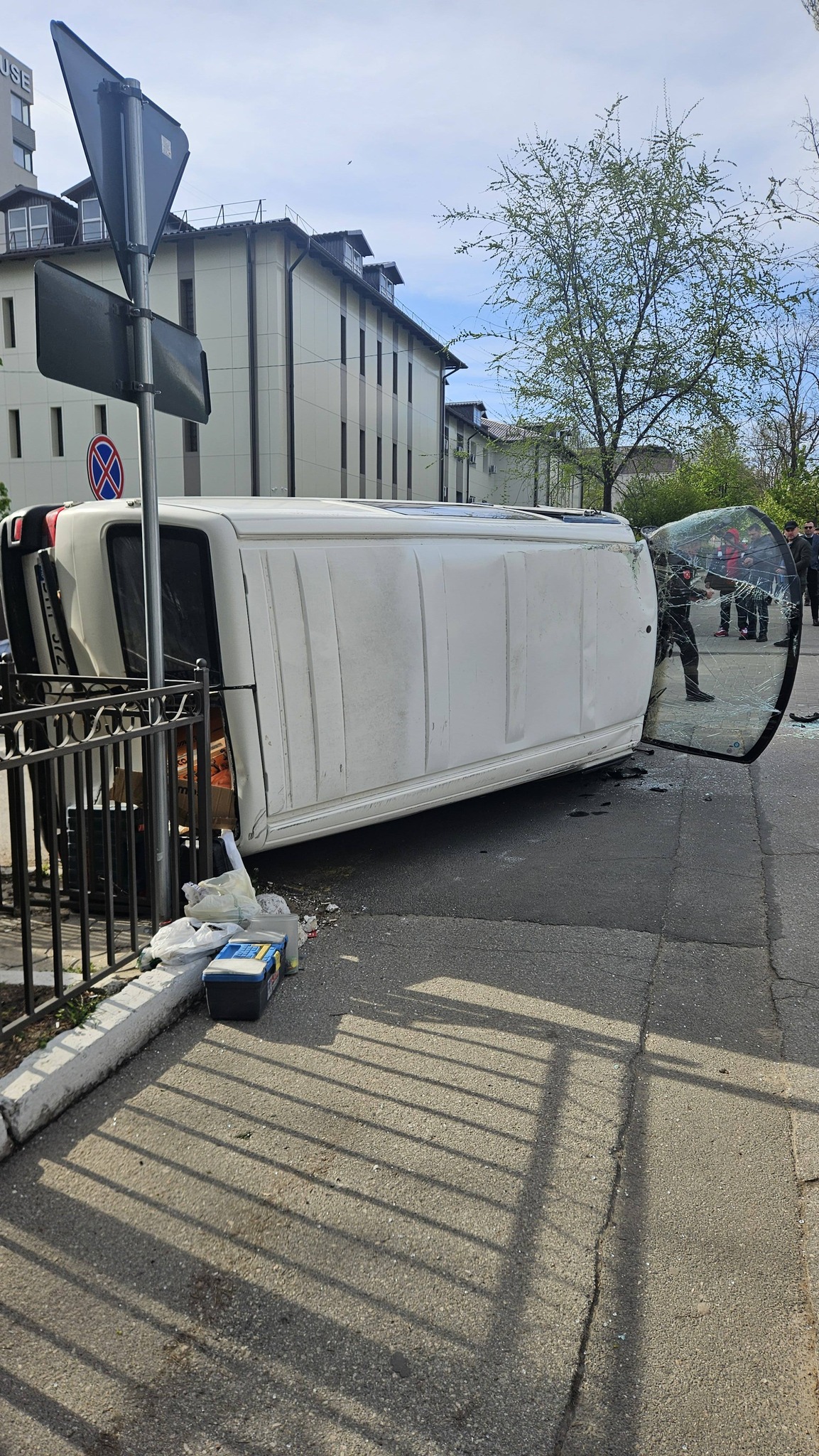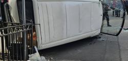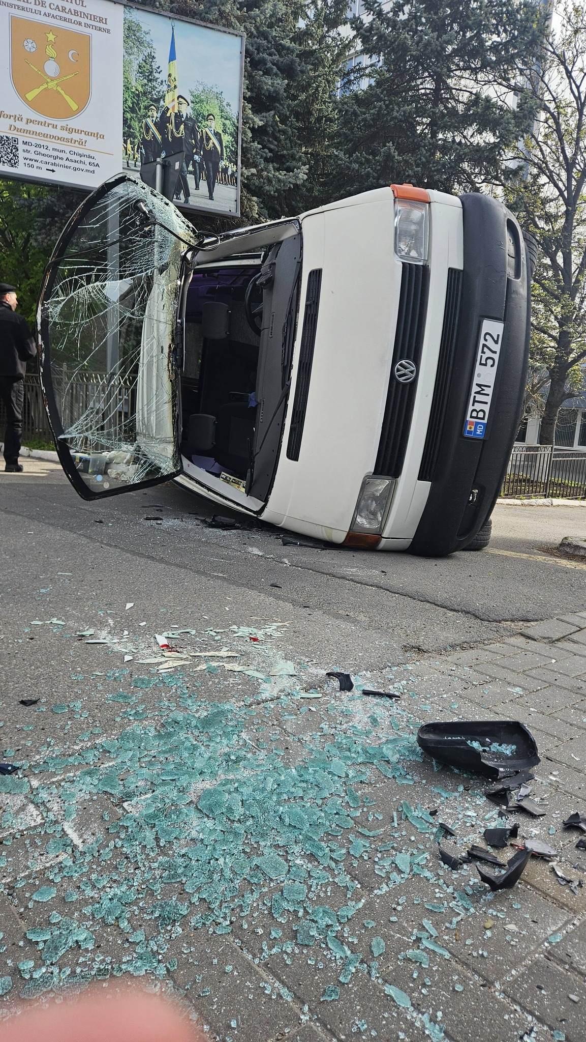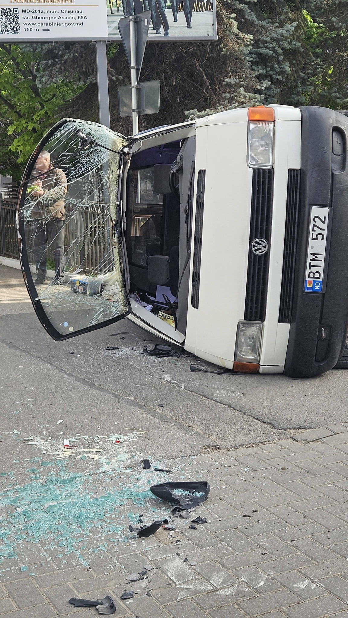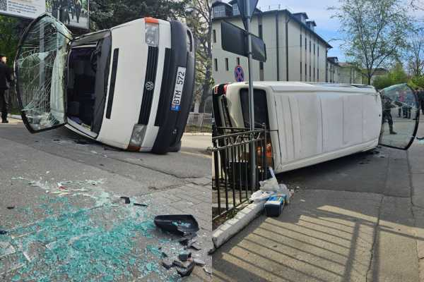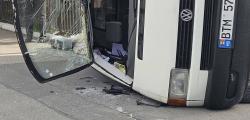 Un Volkswagen T4 s-a răsturnat, în urma unui accident rutier cu un troleibuz. Impactul a fost surprins de martorii oculari, pe str. Gheorghe Asachi din capitală.