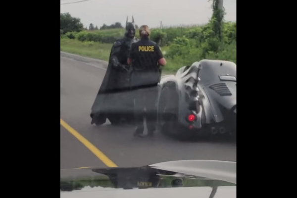 Întâmplarea a fost filmată de un martor ocular. Din imaginile video vedem cum polițiștii îi ordonă Batmobil-ului să se oprească, după care odată ce ofițerul de polișie se apropie de vehiculul neobișnuit, din acesta sare și Batman, care schimbă câteva cuvinte cu oamenii legii și este lăsat să-și continue drumul.