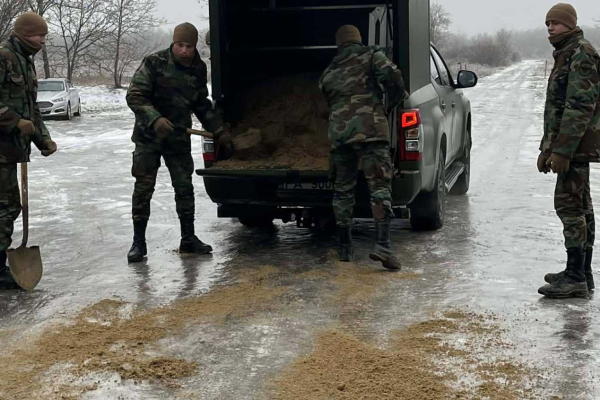 Zis și făcut! Armata Națională a distribuit nisip și material antiderapant în mai multe sectoare